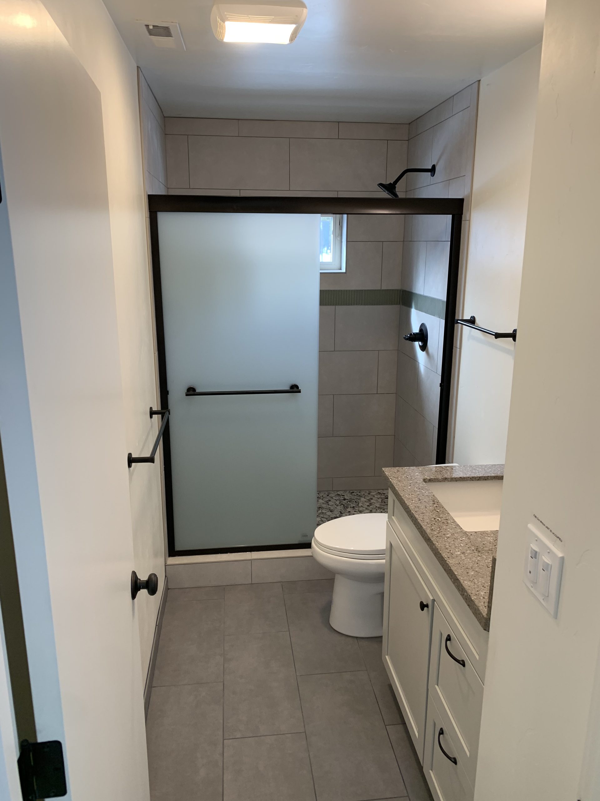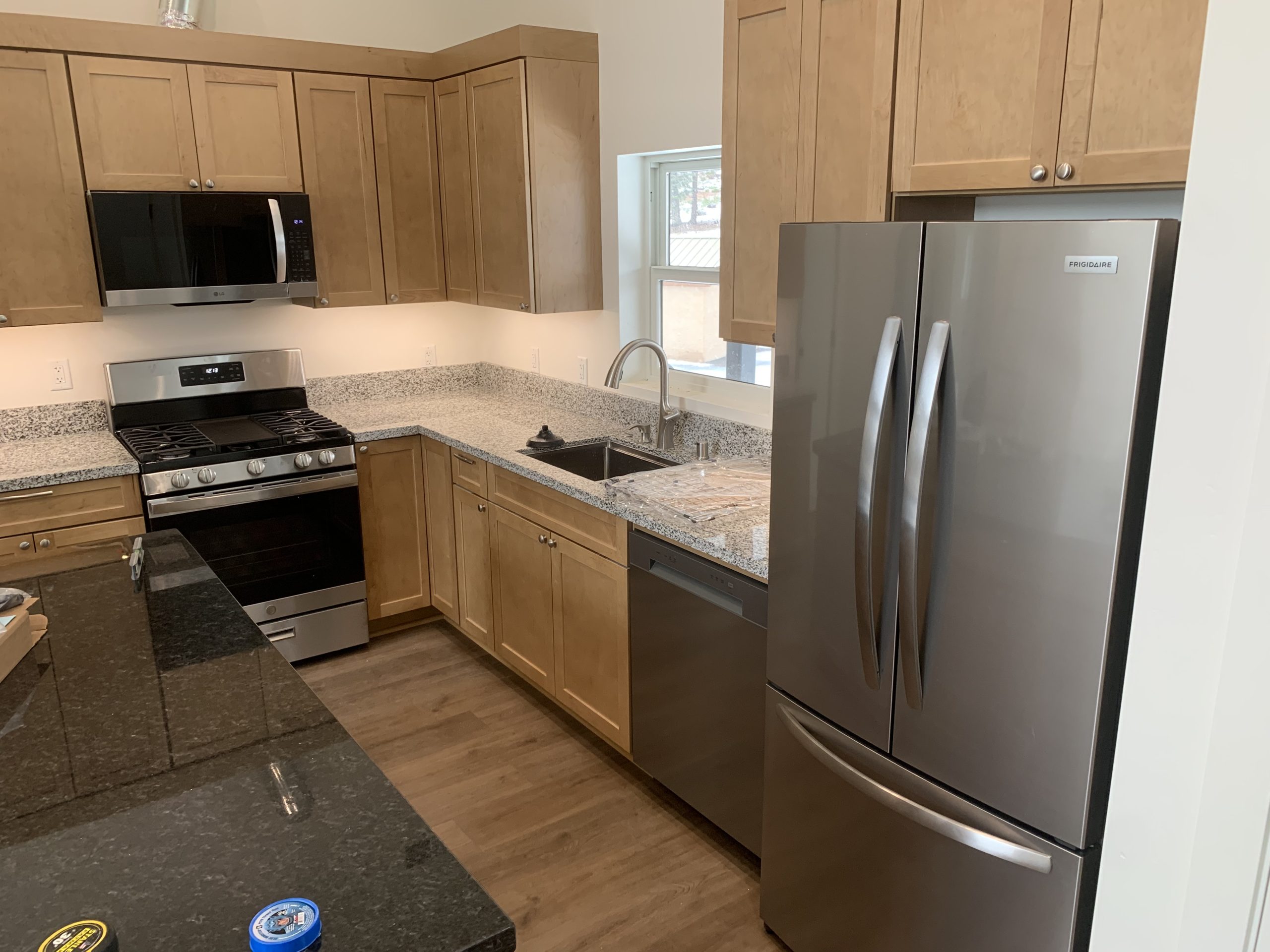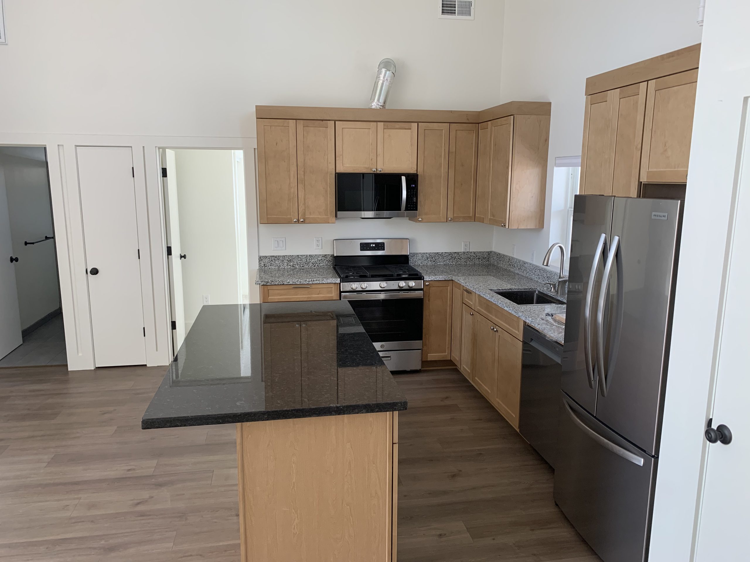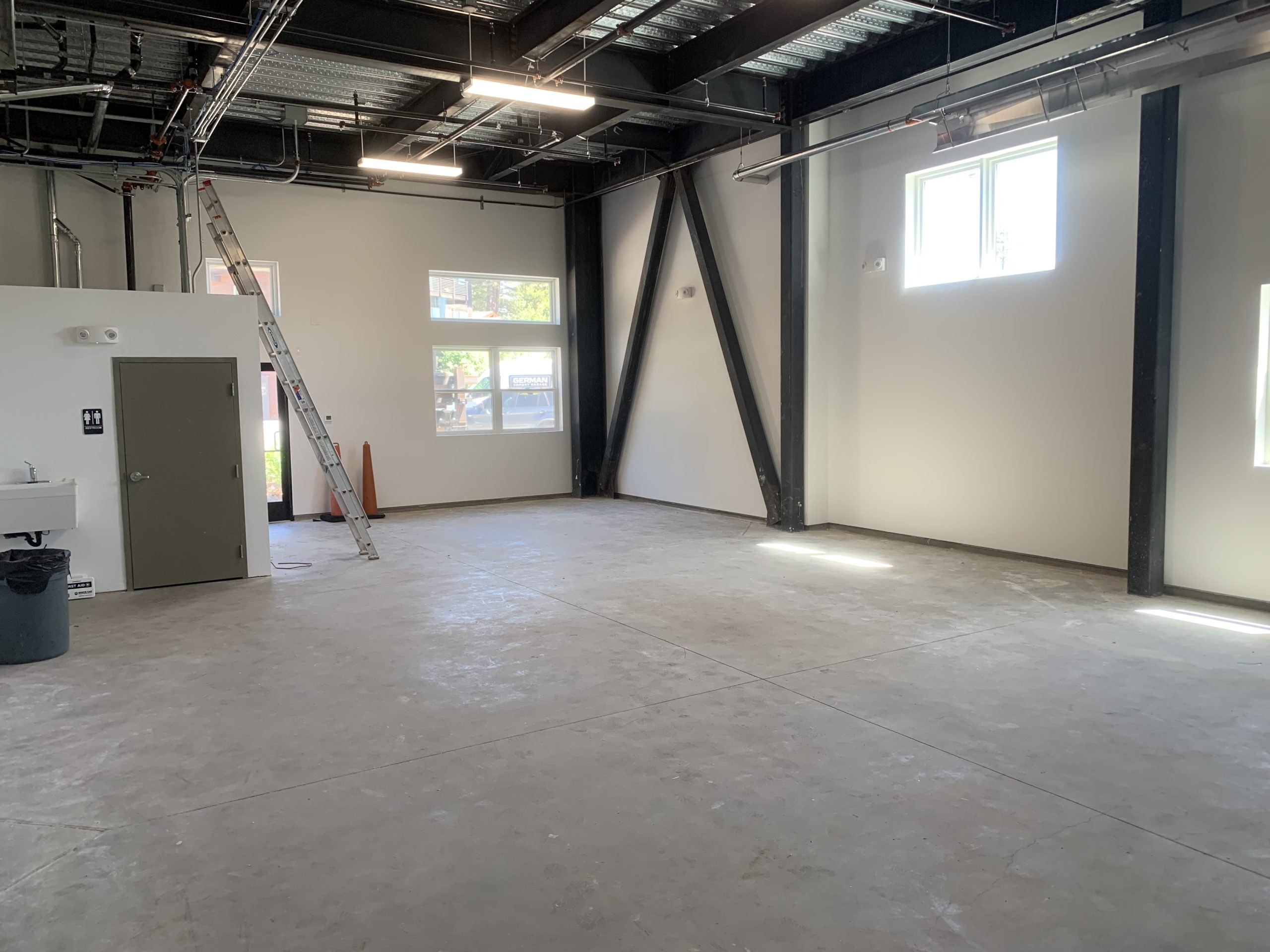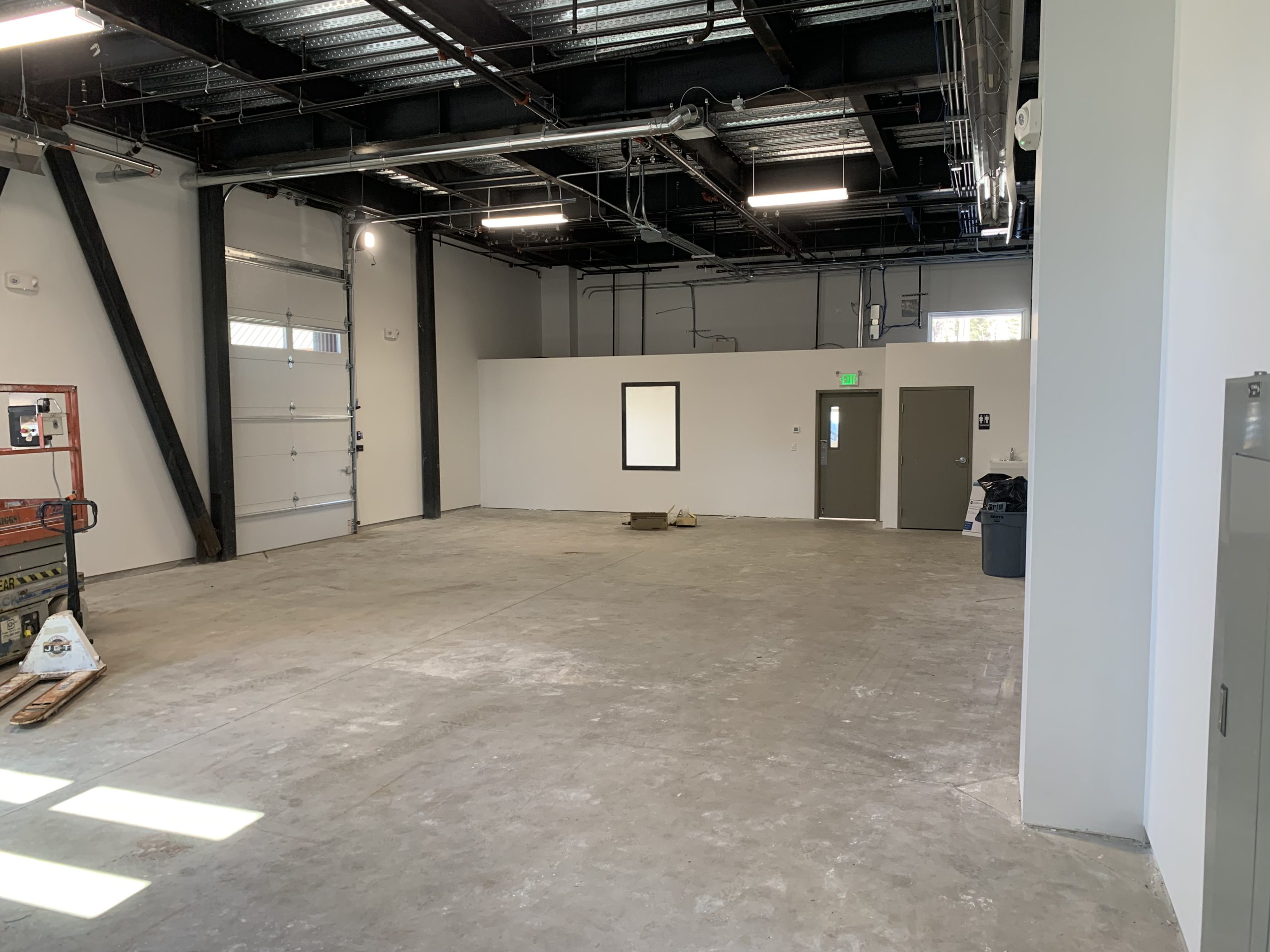 Unit B1 is an industrial work space with a bathroom and 3 parking spaces.  Office space could be added through tenant improvements.  The space has a large 14′ tall x 12′ wide garage door and radiant heated for a very comfortable work environment.
