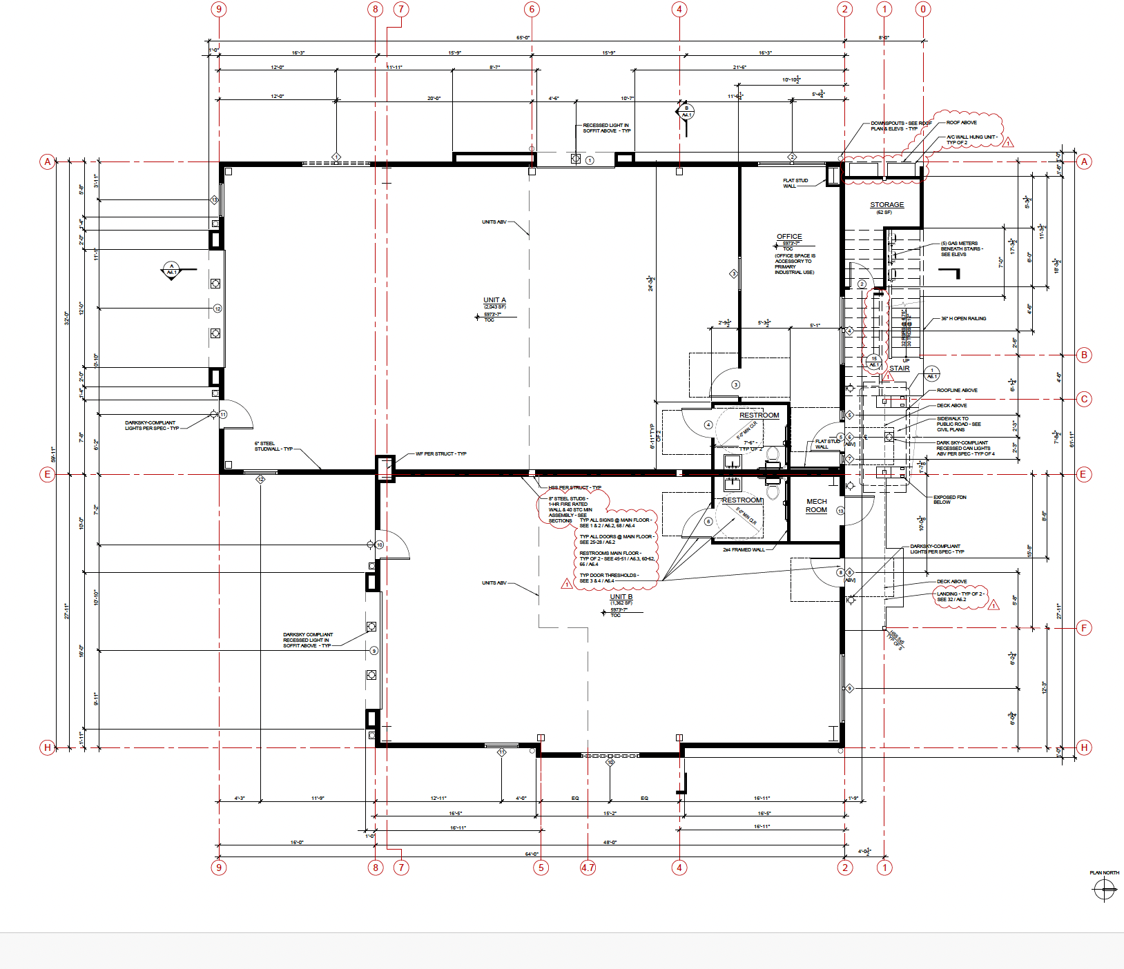 Unit A1 is a complete business space with 1750sf  indoor industrial work space, 300sf office space, 1200sf of outdoor storage, bathroom, and 4 parking spaces. The space has a large 14′ tall x 12′ wide garage door and radiant heat for a very comfortable work environment.